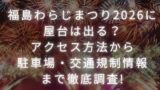 「屋台はどこに出るの?」「アクセスは便利?」「駐車場はある?」と気になる方も多いはず。